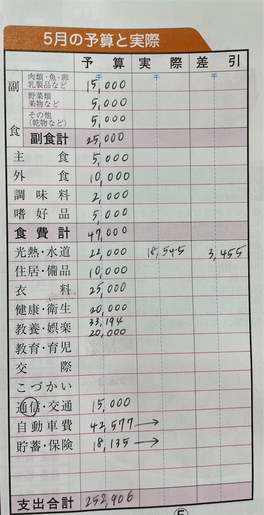 夫の希望で夏服を買う予定で、衣料費を多めに入れています。