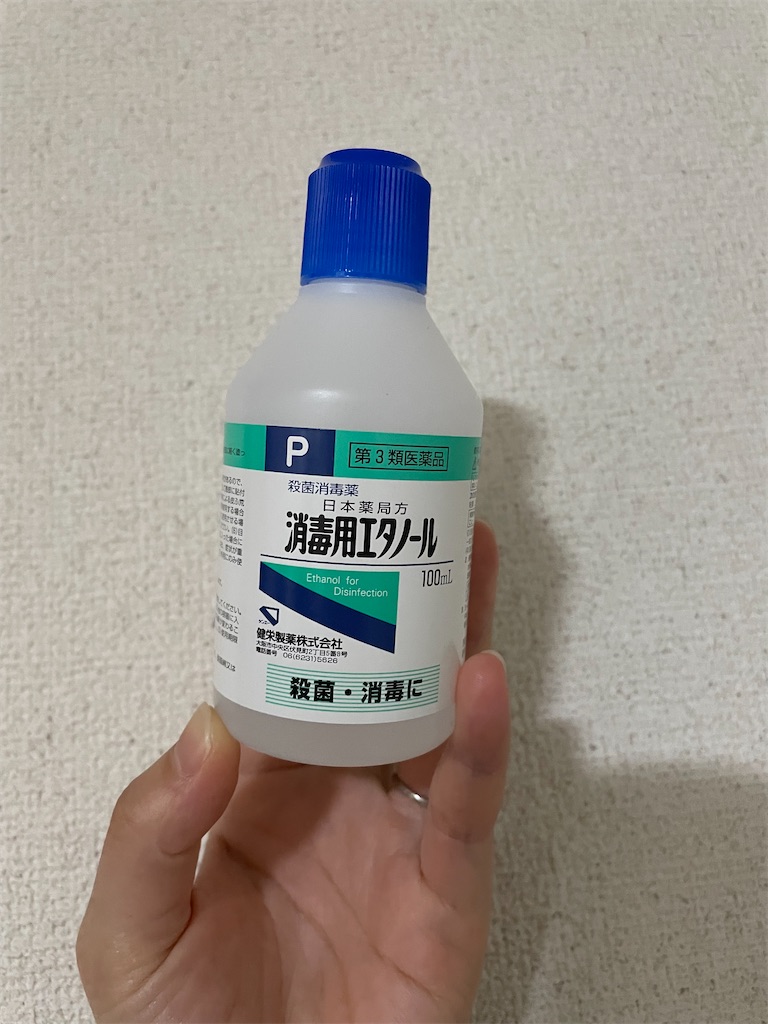確実に消毒できるよう、アルコールは70度以上のエタノールで、なおかつ添加物?が入っていない、純粋なエタノールを使用しましょう!